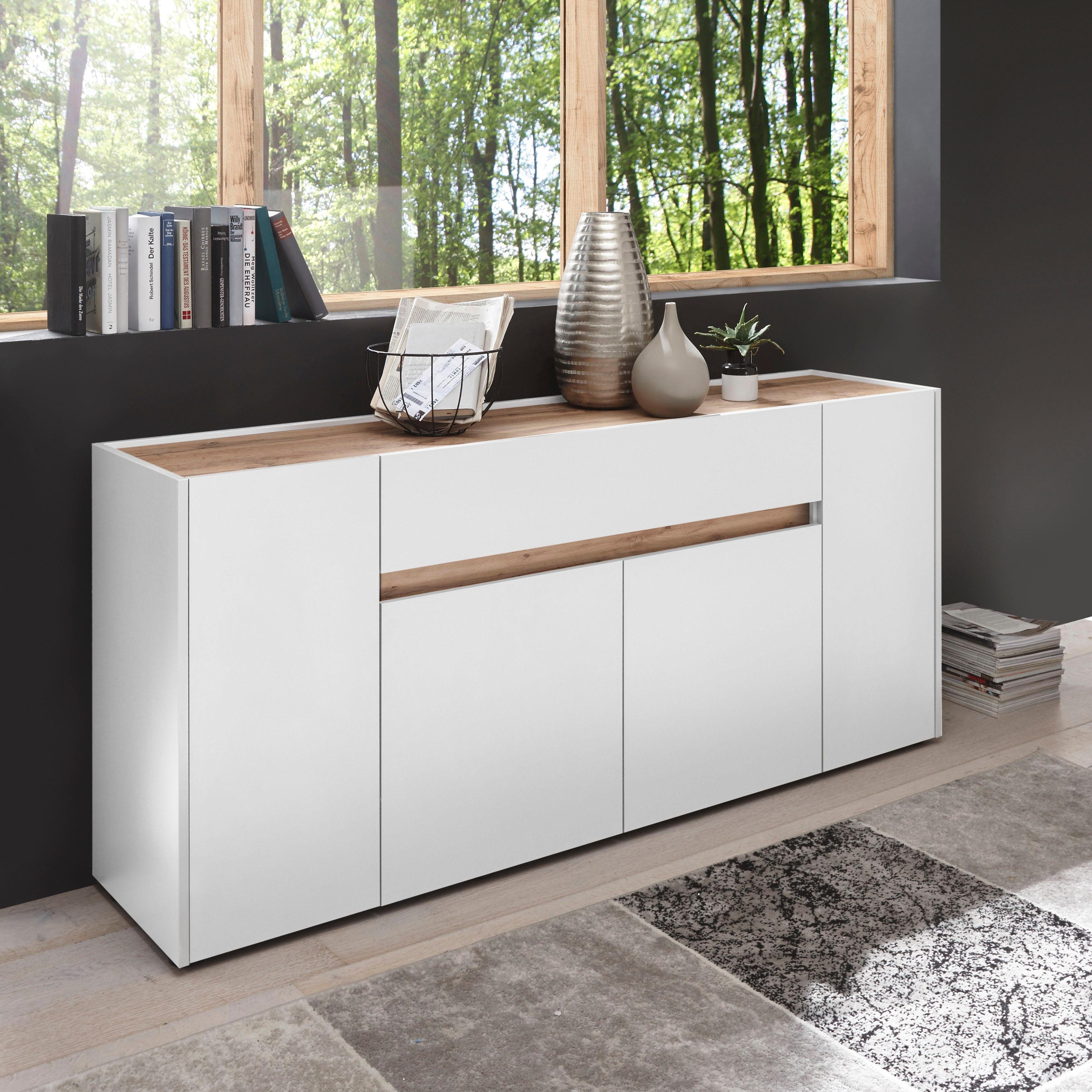 Sideboard romina matt weiss und eiche massiv 150 cm massives sideboard cubus 145cm sheesham stone finish board anrichte.